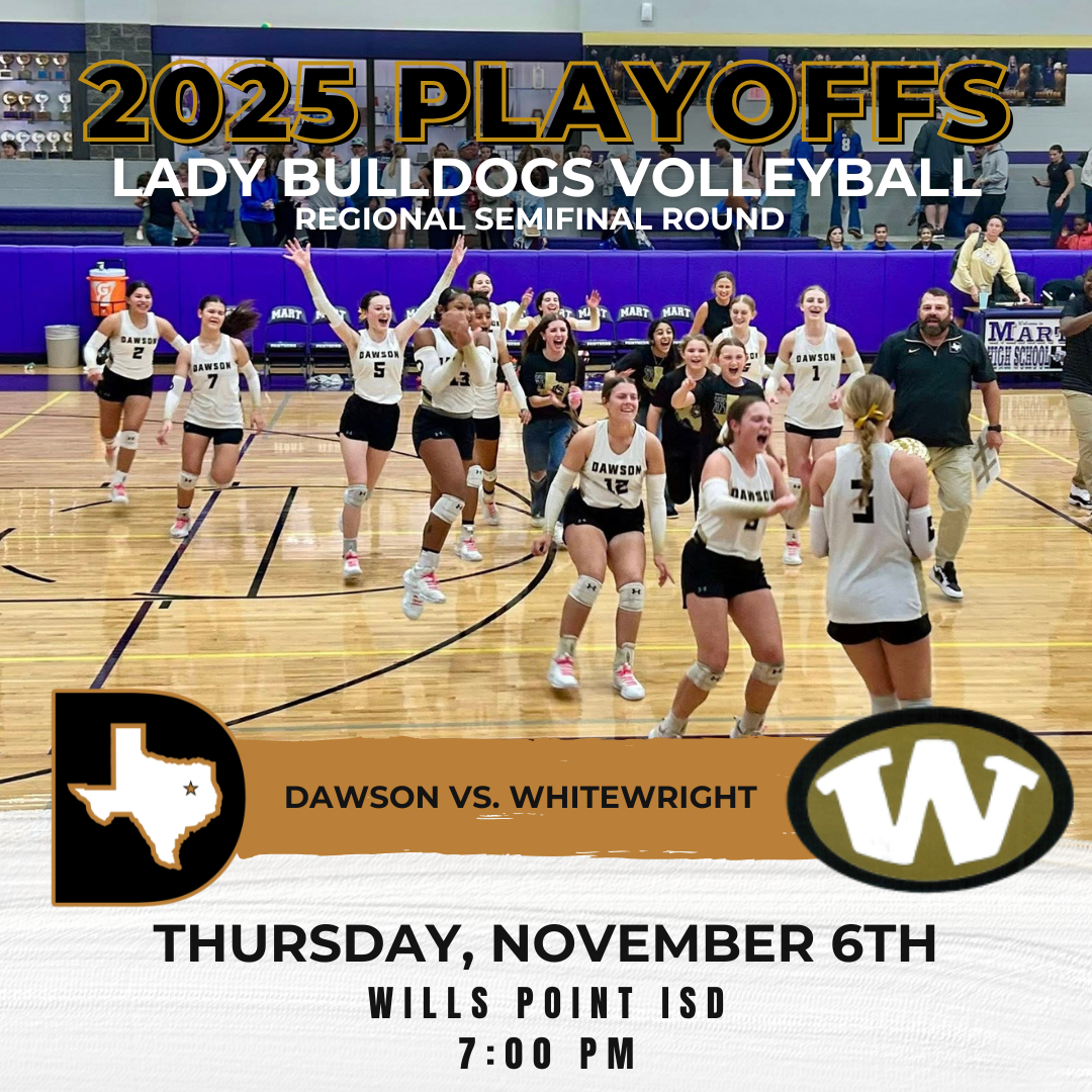 The Dawson community is invited to help us send off our Lady Bulldogs Varsity Volleyball Team as they head to compete in the Regional Semifinals!