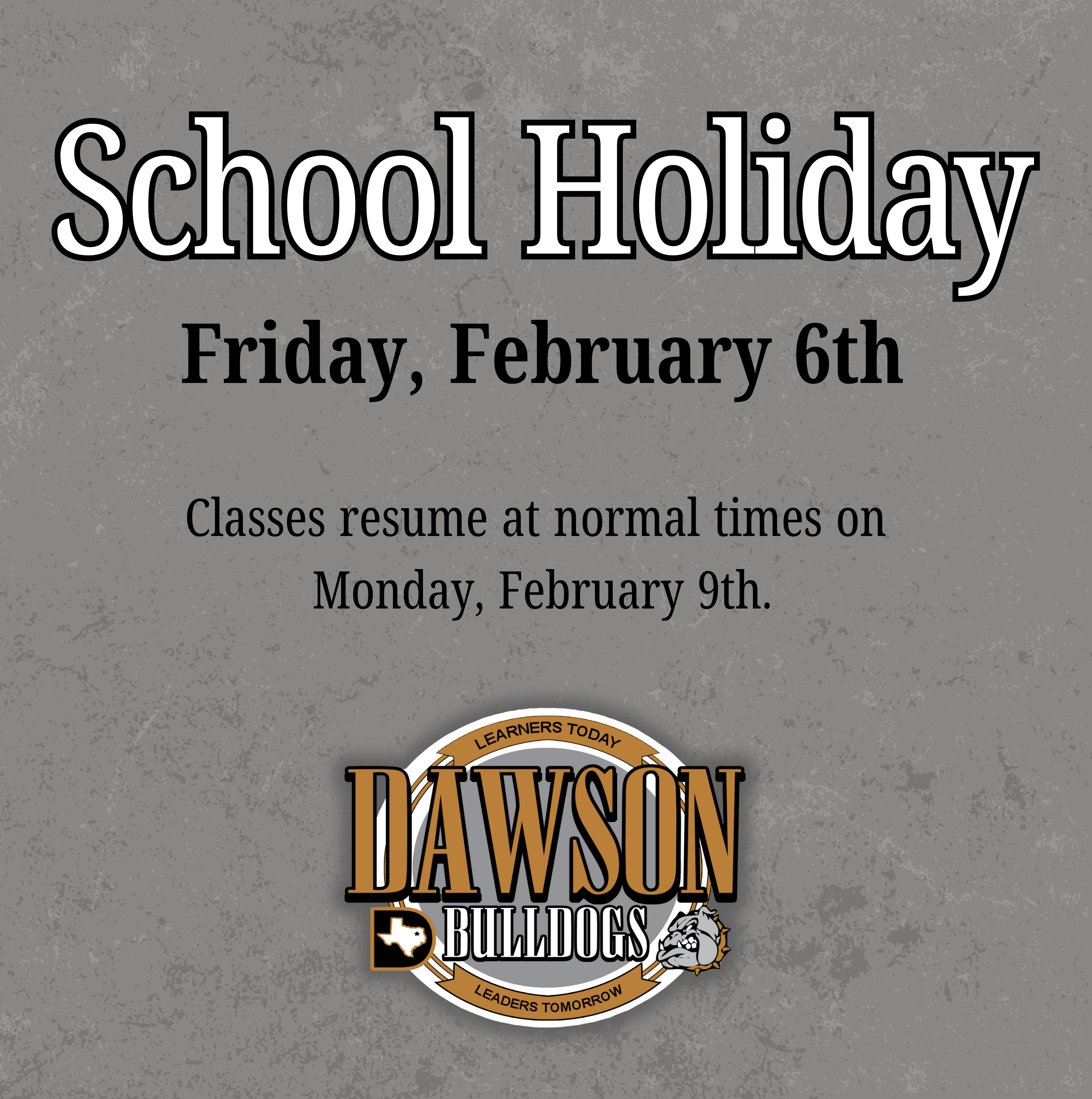Dawson ISD estará cerrado el viernes 6 de febrero.